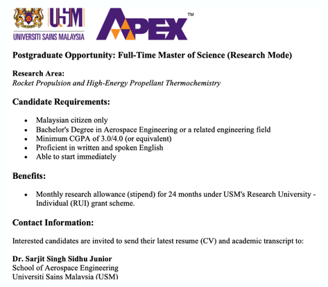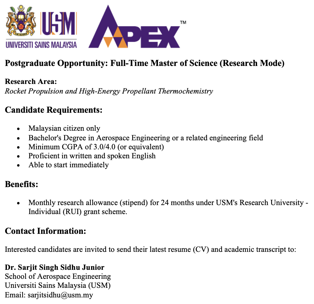 The School of Aerospace Engineering at Universiti Sains Malaysia (USM) has its roots in the School of Applied Science, established in 1972 at the main campus in Penang. Initially offering basic engineering fields, the school underwent a major restructuring in 1984, leading to the creation of specialized schools and the expansion of USM's engineering programs. To accommodate the growing demand for space, the engineering faculties were relocated to the newly established USM Perak Branch Campus in Seri Iskandar, Perak, marking the foundation for future engineering schools, including Aerospace Engineering.